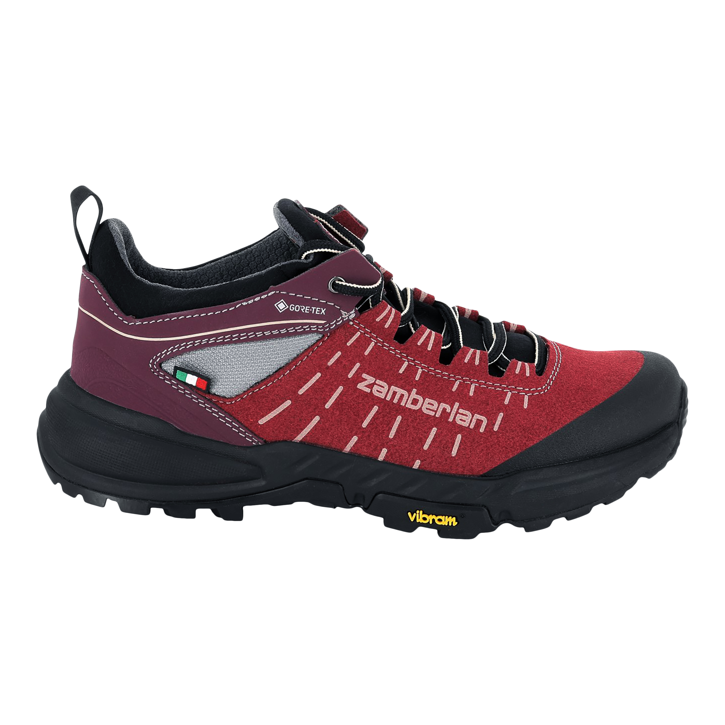 More inventory arriving this winter - sign up to be notified via email. The Women's Circe Low GTX is a fast hiker with exceptional stability and freedom of movement. Built on Zamberlan's Vibram® Junko with sticky Megagrip maximalist outsole, the Circle Low is designed for a lightweight yet supremely cushioned and comfortable ride. The low cut, suede-effect, microfiber uppers enhance breathability while Gore-Tex®membranes guarantee waterproof protection, creating the ideal foot environment for versatile hiking environments. The Circe Low's design and construction are handcrafted in Italy so you can have the utmost confidence and performance whenever and wherever you hike.