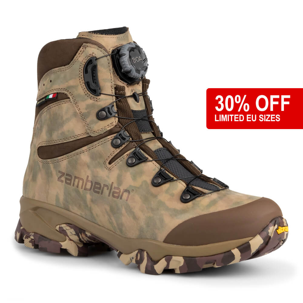 ▪ Uppers feature Zamberlan’s latest leather construction with a unique camouflage blend to enhance your entire hunting kit, from head to boot.